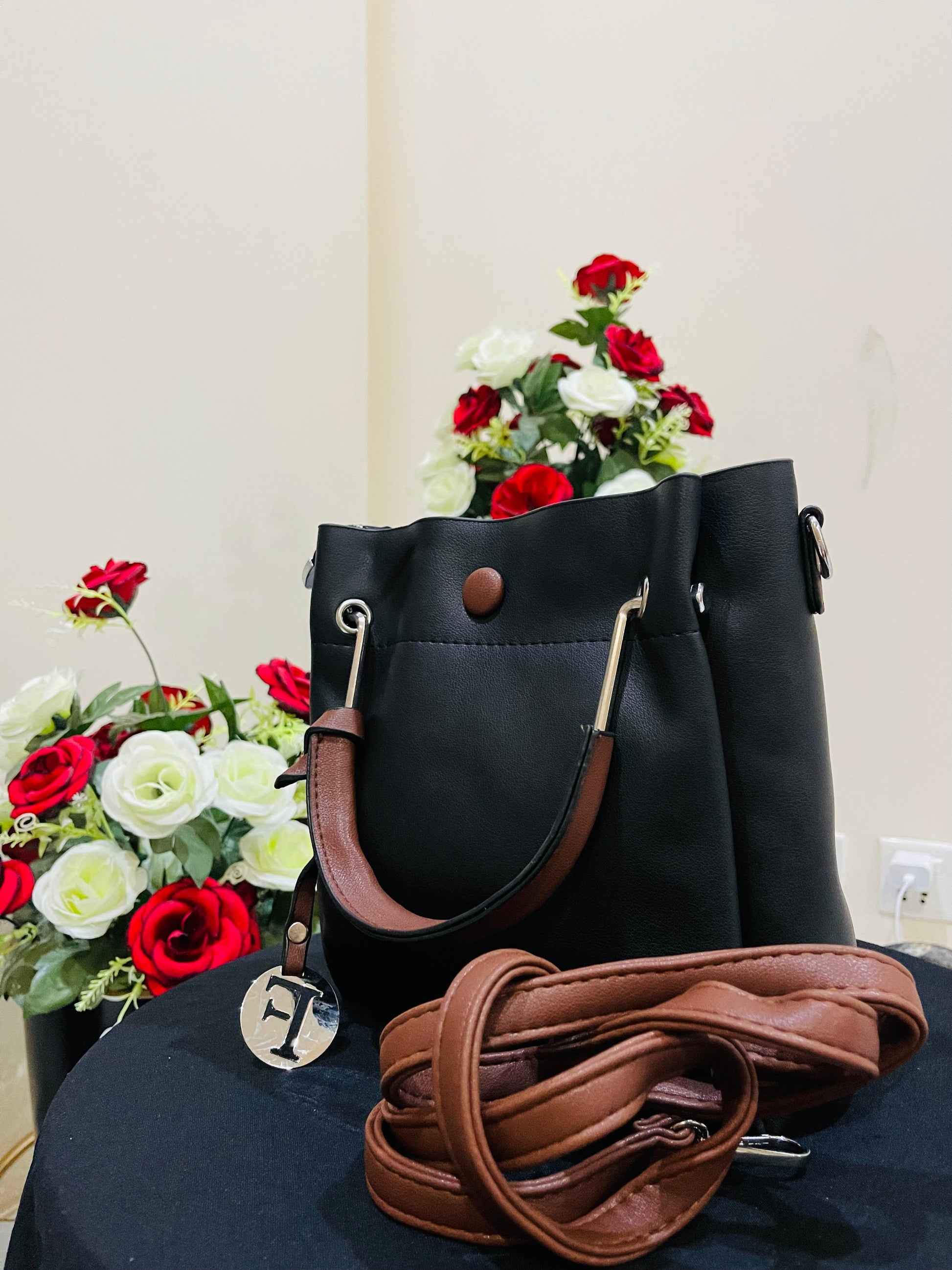 Black soft leather hand bag-original leather